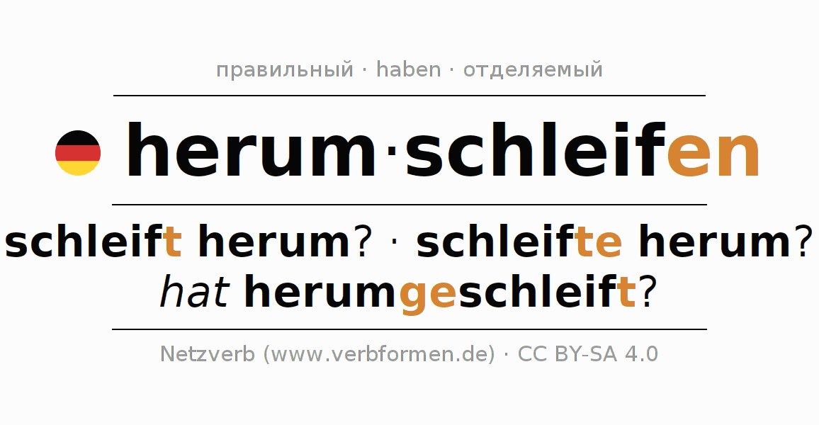 - Инфинитив I: herumschleifen, herumzuschleifen