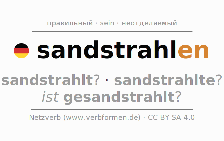 - Презенс: sandstrahl(e) (du), sandstrahlen wir, sandstrahlt (ihr), sandstrahlen Sie