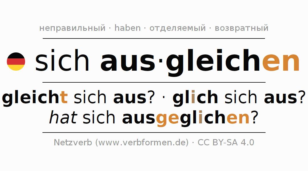 Простые формы спряжения глаголов в презенсе, претеритуме, императиве и конъюнктиве sich ausgleichen
