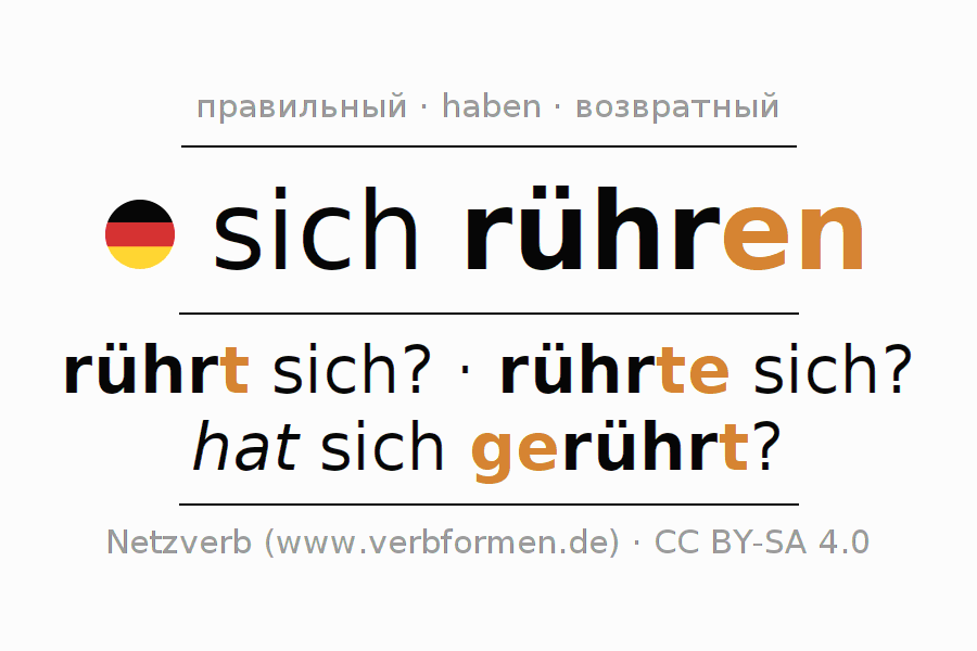 Все временные формы глагола и отглагольных форм sich rühren