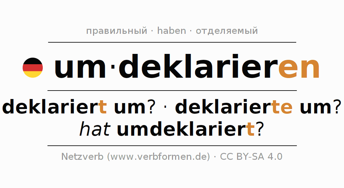 Все временные формы глагола и отглагольных форм umdeklarieren