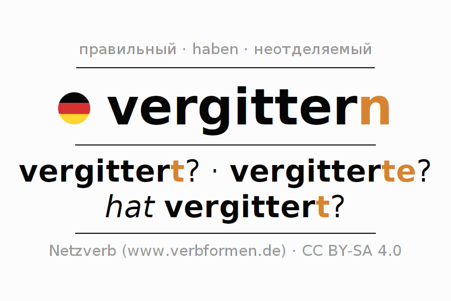 - Презенс: vergitt(e)r(e) ich?, vergitterst du?, vergittert er?, vergittern wir?, vergittert ihr?, vergittern sie?