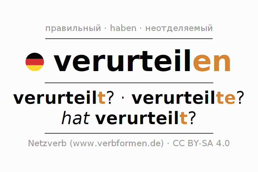 Все временные формы глагола и отглагольных форм verurteilen