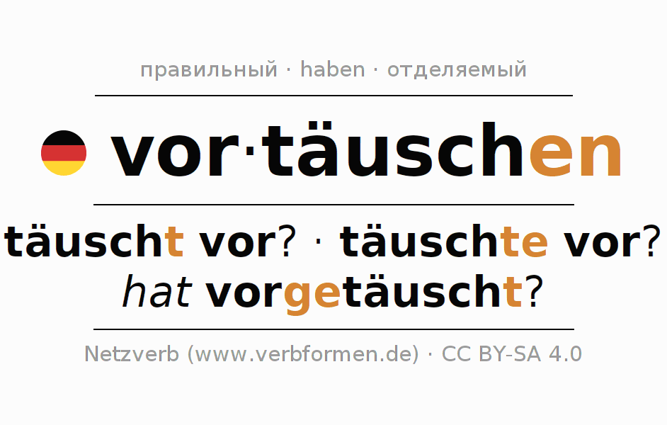 Простые формы спряжения глаголов в презенсе, претеритуме, императиве и конъюнктиве vortäuschen