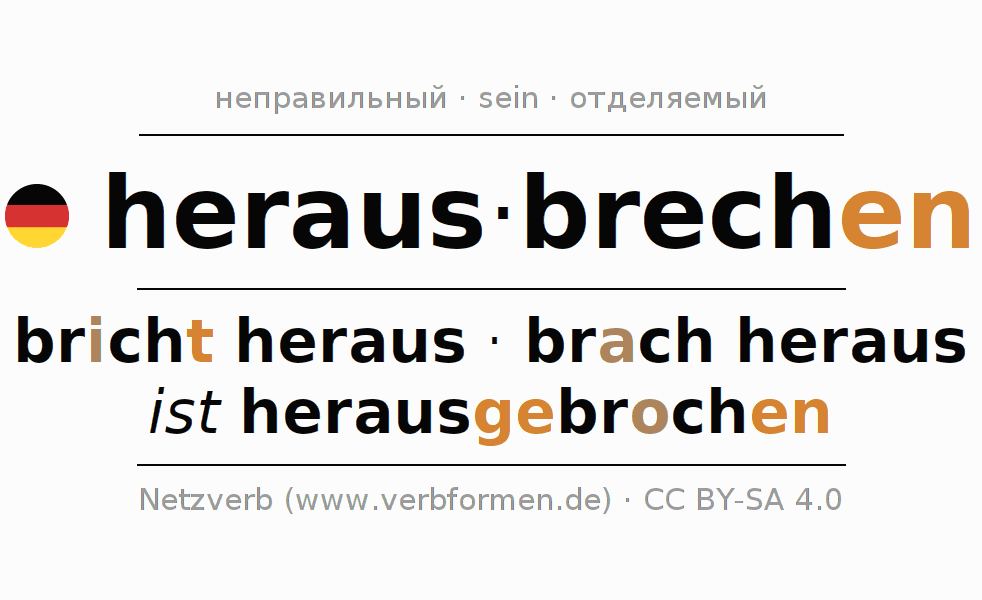Все временные формы глагола и отглагольных форм herausbrechen