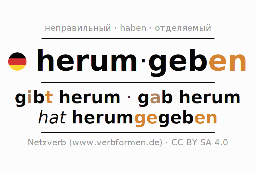 - Инфинитив II: herumgegeben haben, herumgegeben zu haben