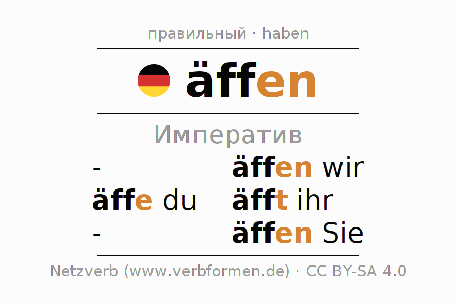 Этот глагол äffen полностью спрягается во всех лицах и числах Императив Презенс.