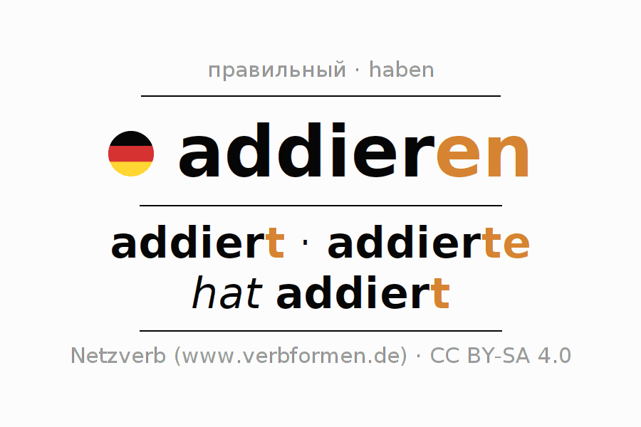 Этот глагол addieren полностью спрягается во всех лицах и числах Императив Презенс.