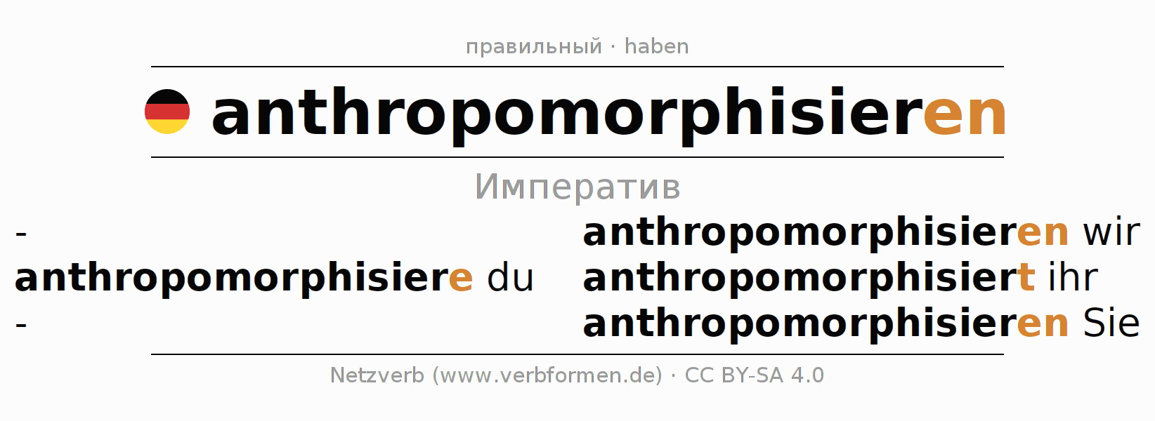 Этот глагол anthropomorphisieren полностью спрягается во всех лицах и числах Императив Презенс.