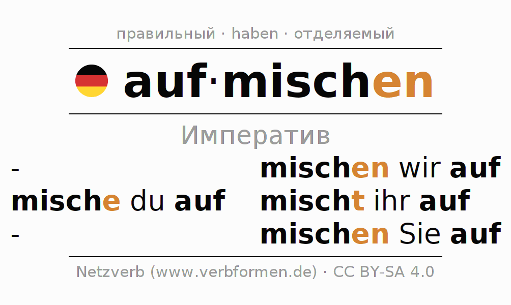 Этот глагол aufmischen полностью спрягается во всех лицах и числах Императив Презенс.