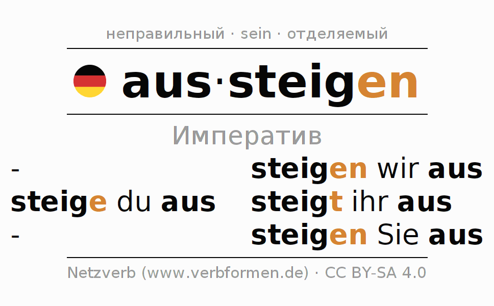 - Как спрягается aussteigen в Императив?