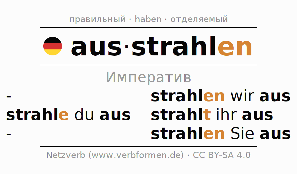 - Как спрягается ausstrahlen в Императив?