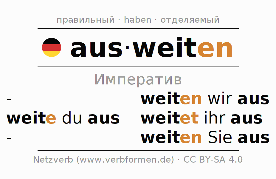 Этот глагол ausweiten полностью спрягается во всех лицах и числах Императив Презенс.