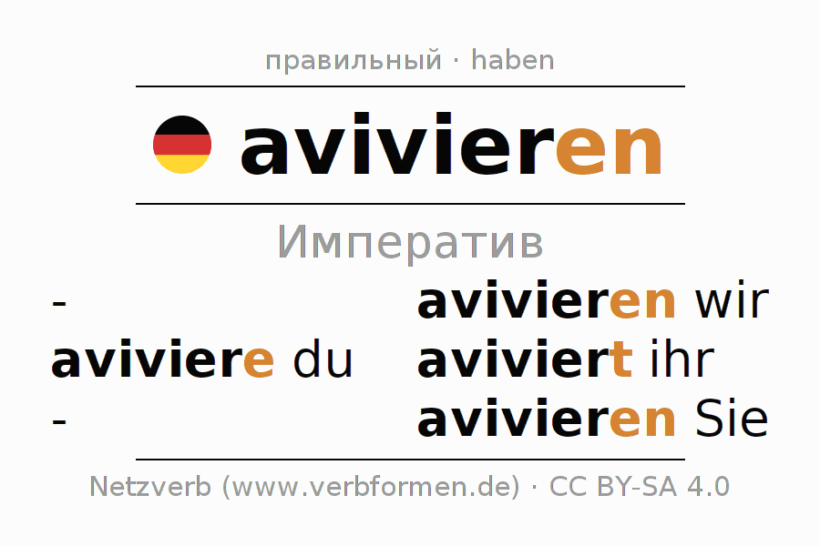 Этот глагол avivieren полностью спрягается во всех лицах и числах Императив Презенс.