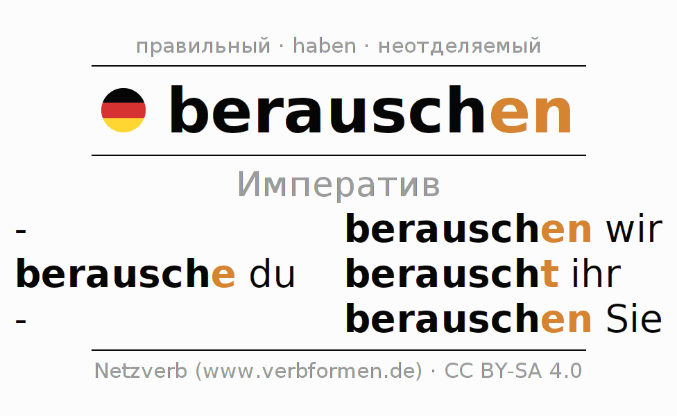 Повелительное наклонение образуется на базе глагольного основания rausch