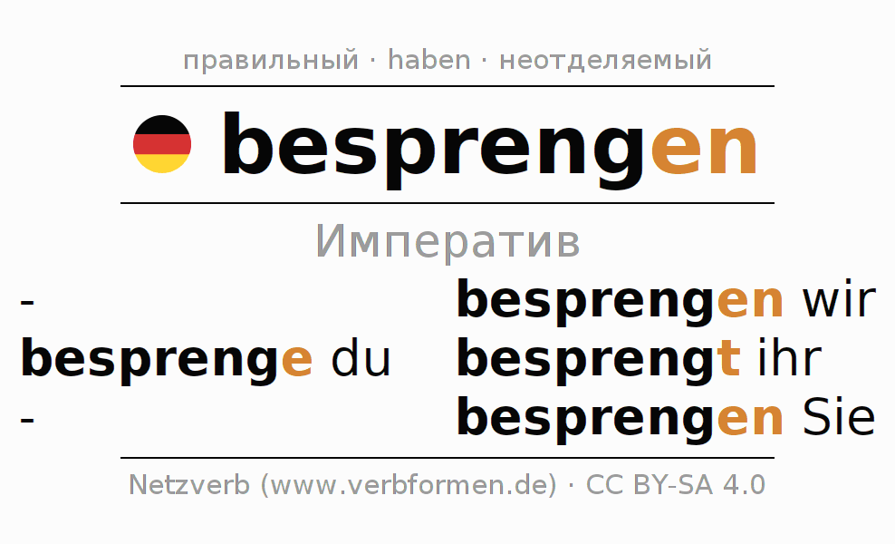 Этот глагол besprengen полностью спрягается во всех лицах и числах Императив Презенс.