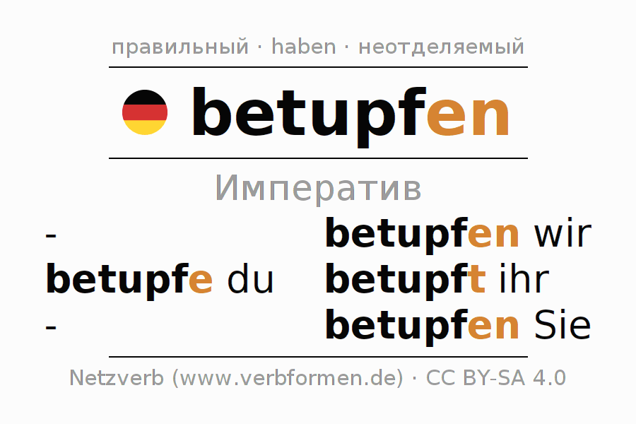 Этот глагол betupfen полностью спрягается во всех лицах и числах Императив Презенс.