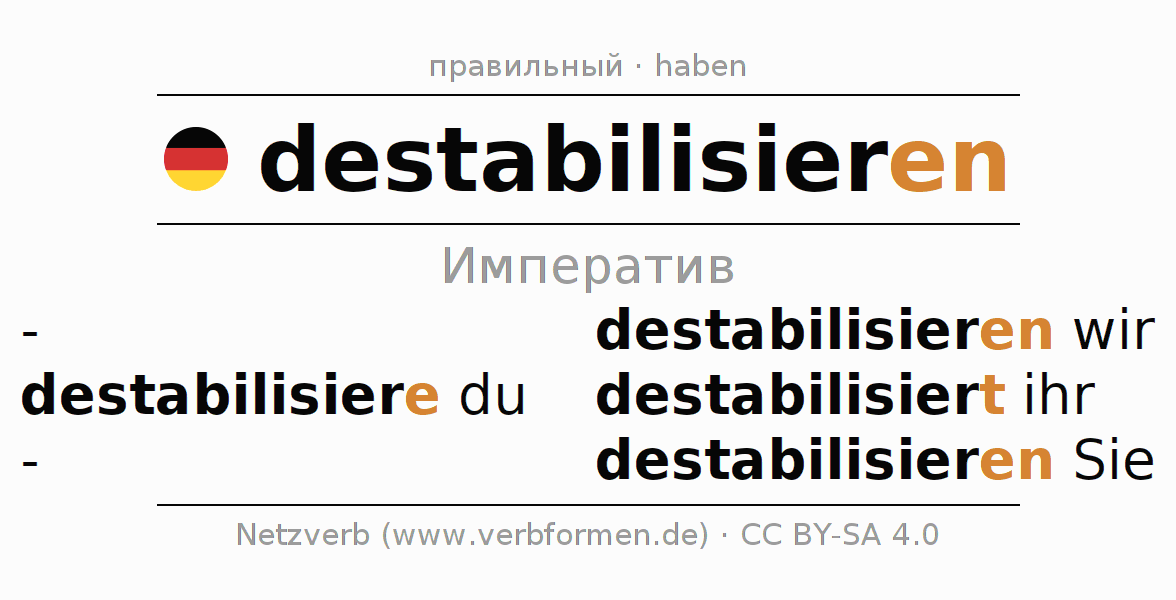 Этот глагол destabilisieren полностью спрягается во всех лицах и числах Императив Презенс.