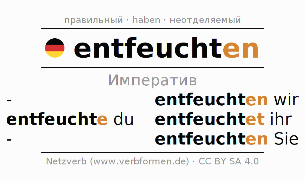 Этот глагол entfeuchten полностью спрягается во всех лицах и числах Императив Презенс.