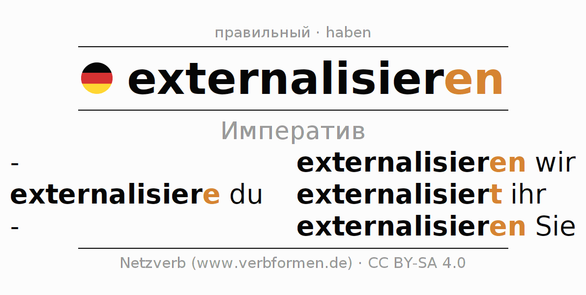 Этот глагол externalisieren полностью спрягается во всех лицах и числах Императив Презенс.