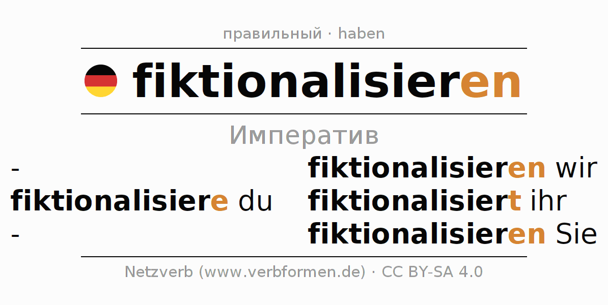 Этот глагол fiktionalisieren полностью спрягается во всех лицах и числах Императив Презенс.
