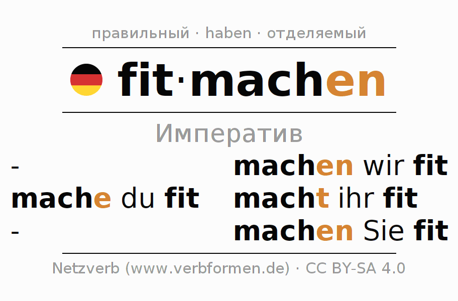Этот глагол fitmachen полностью спрягается во всех лицах и числах Императив Презенс.