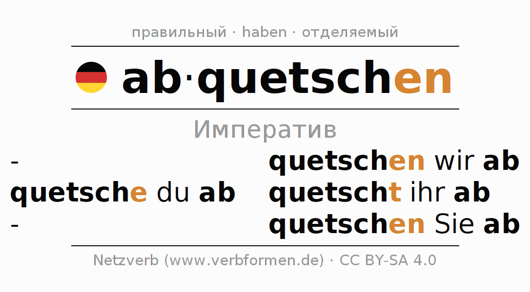 Этот глагол abquetschen полностью спрягается во всех лицах и числах Императив Презенс.