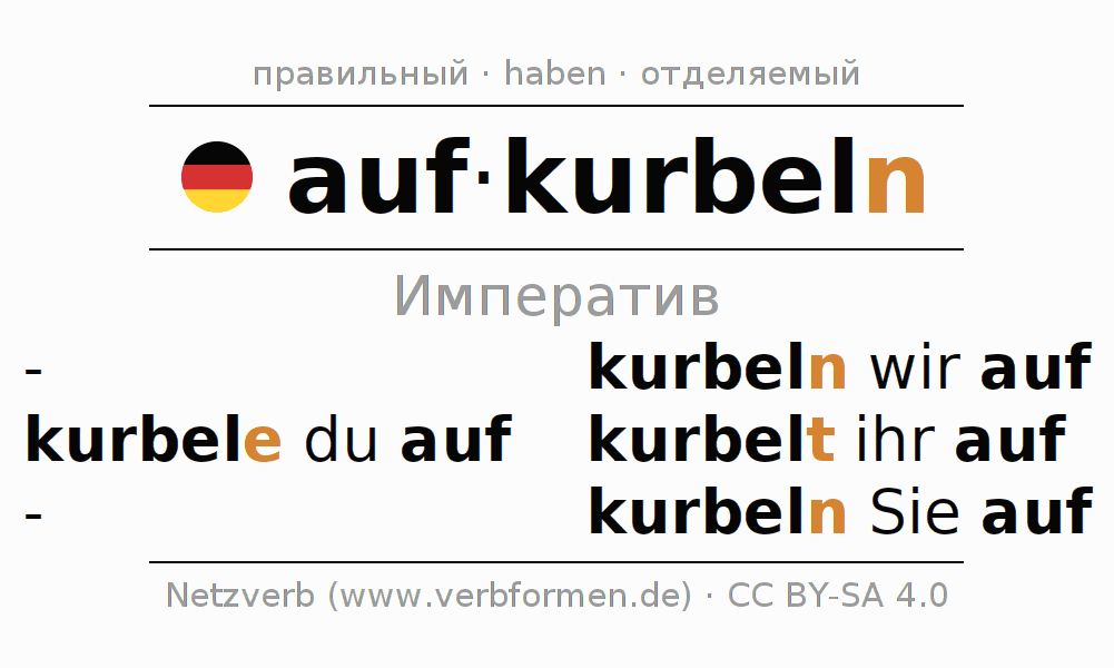 Этот глагол aufkurbeln полностью спрягается во всех лицах и числах Императив Презенс.
