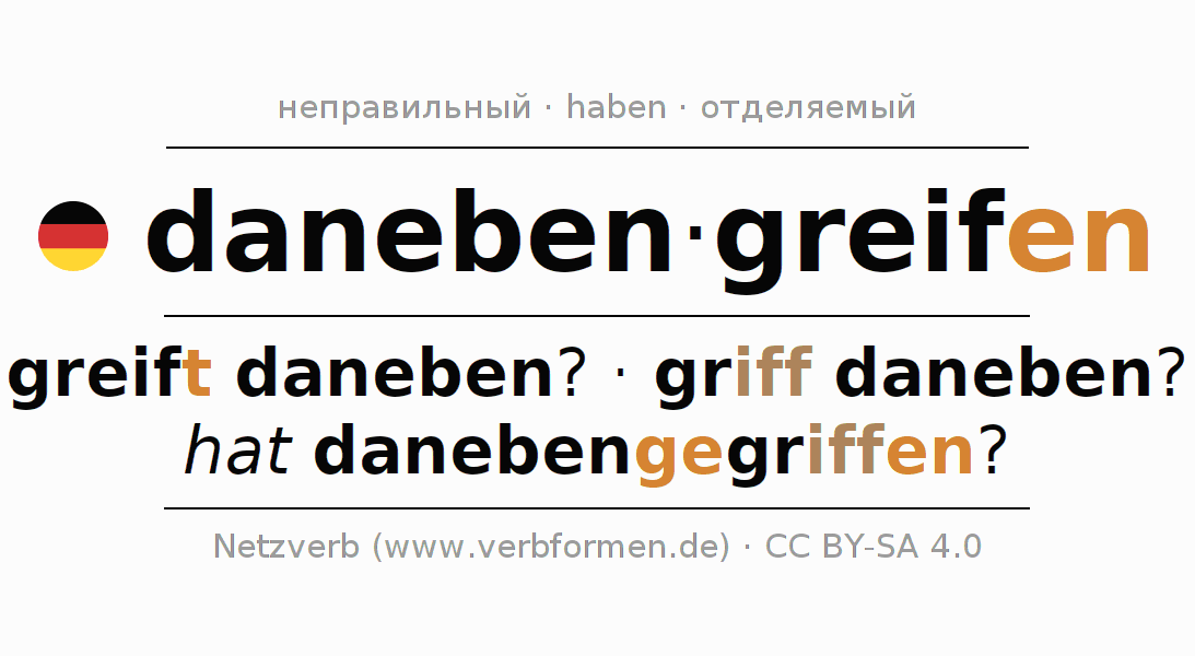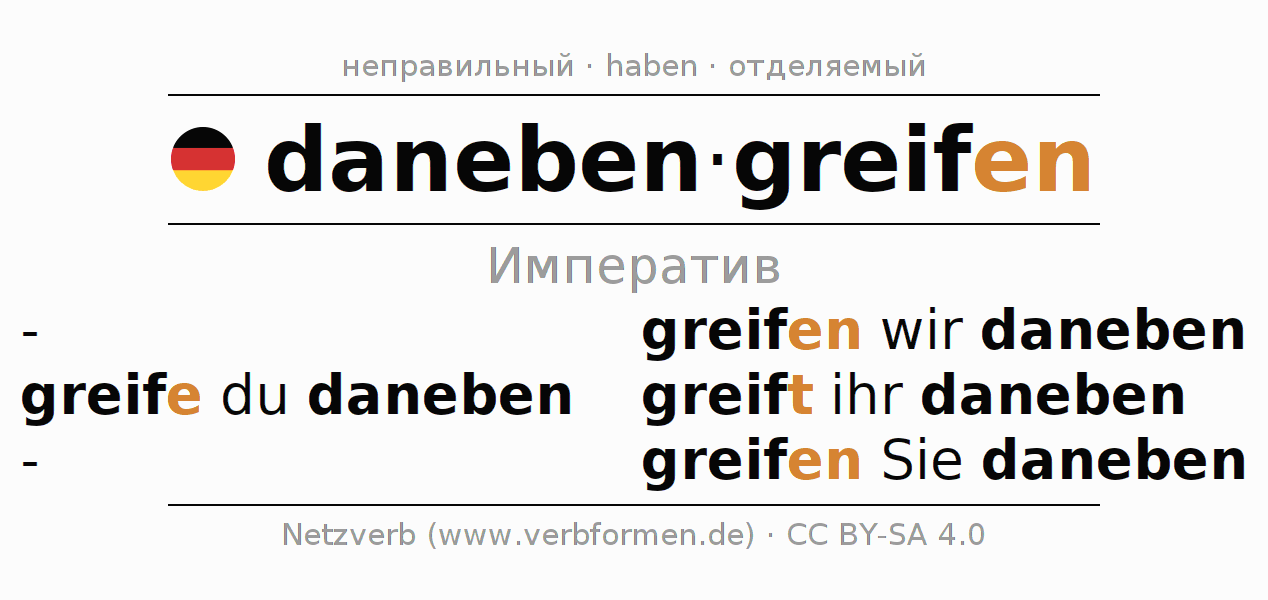 Этот глагол danebengreifen полностью спрягается во всех лицах и числах Императив Презенс.