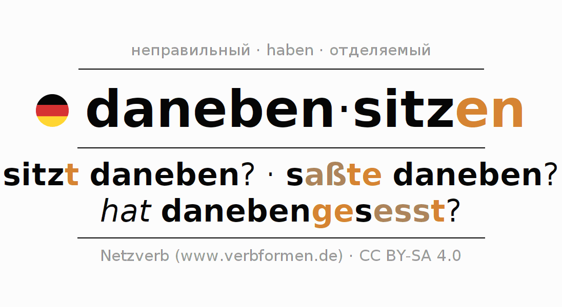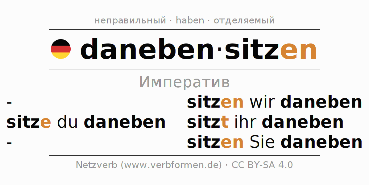 Этот глагол danebensitzen полностью спрягается во всех лицах и числах Императив Презенс.