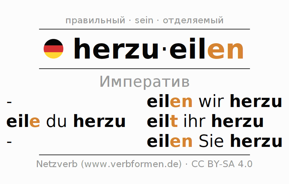 Этот глагол herzueilen полностью спрягается во всех лицах и числах Императив Презенс.
