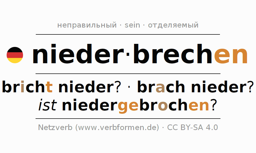 Этот глагол niederbrechen (ist) полностью спрягается во всех лицах и числах Императив Презенс.