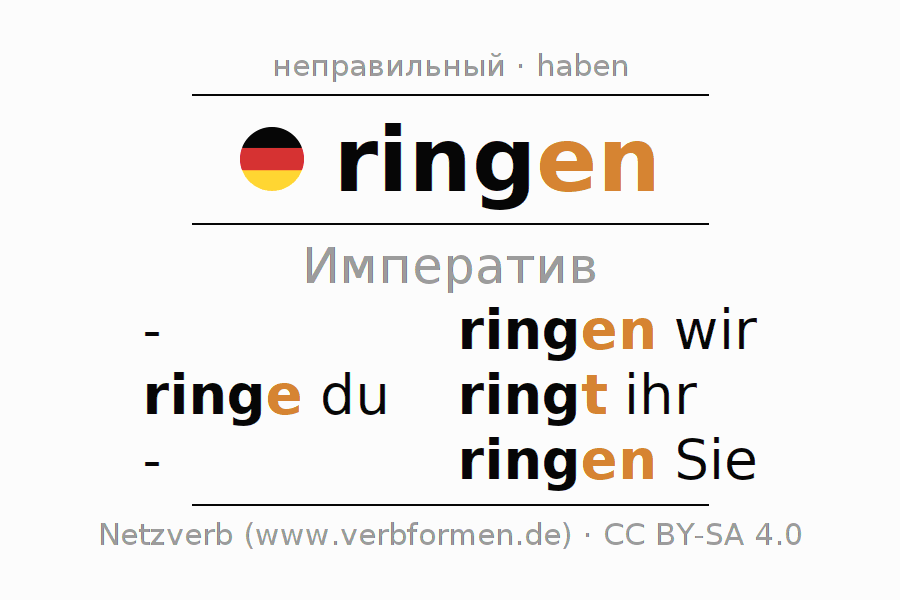 Этот глагол ringen полностью спрягается во всех лицах и числах Императив Презенс.