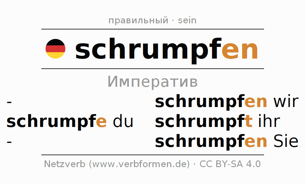 Этот глагол schrumpfen полностью спрягается во всех лицах и числах Императив Презенс.