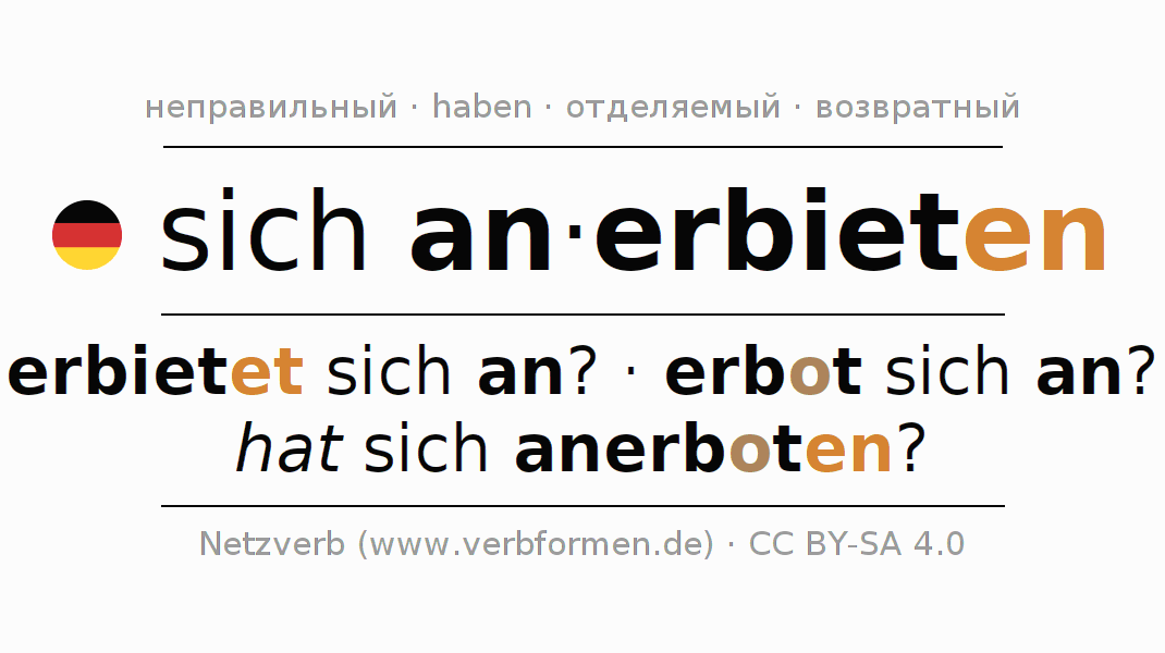 - erbiete (du) dir/dich an (Второе лицоЕдинственное число)