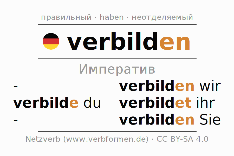 Этот глагол verbilden полностью спрягается во всех лицах и числах Императив Презенс.