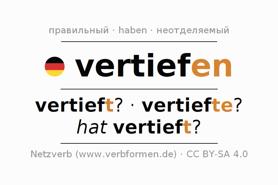 Этот глагол vertiefen полностью спрягается во всех лицах и числах Императив Презенс.