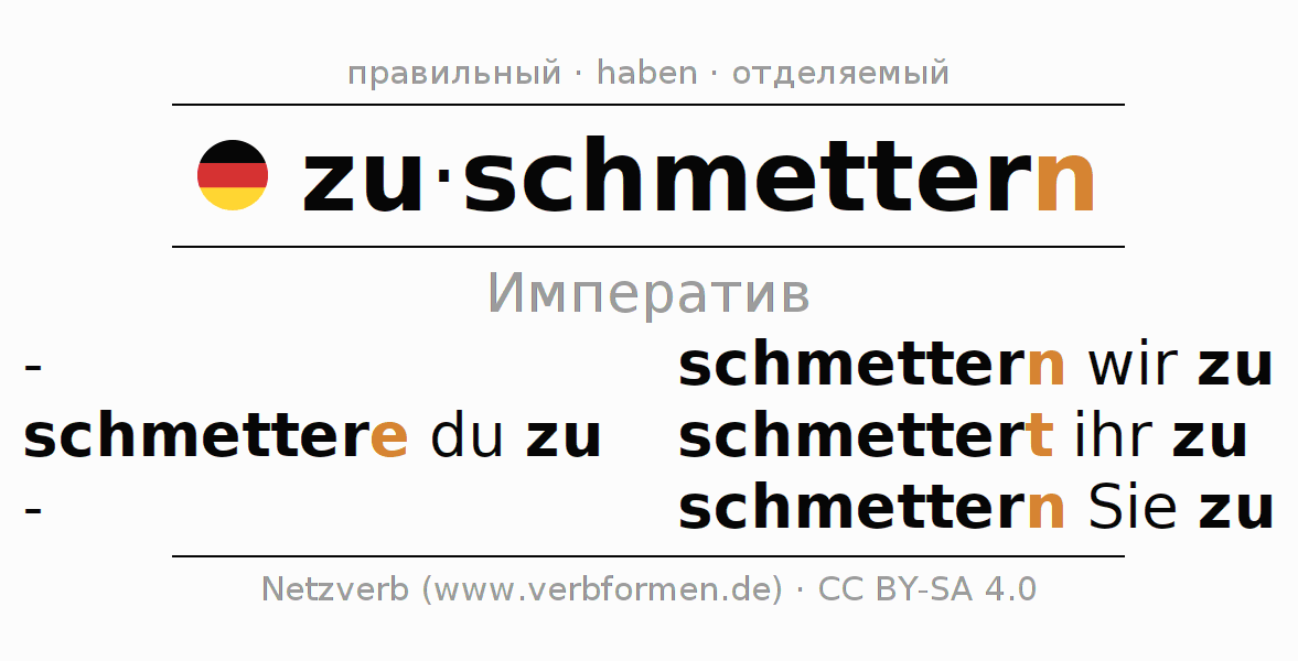 Этот глагол zuschmettern полностью спрягается во всех лицах и числах Императив Презенс.