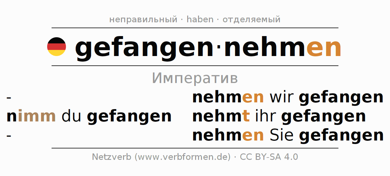 Этот глагол gefangennehmen полностью спрягается во всех лицах и числах Императив Презенс.