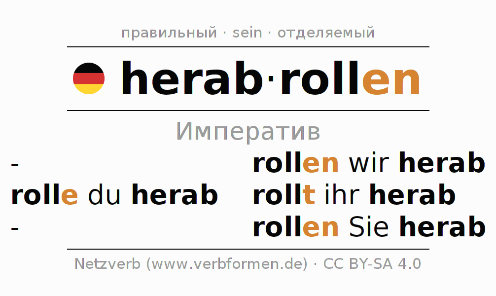 - Образование Императив herabrollen