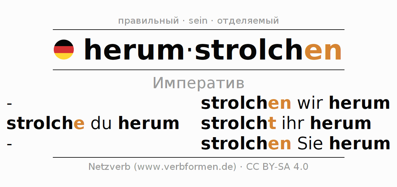 Этот глагол herumstrolchen полностью спрягается во всех лицах и числах Императив Презенс.