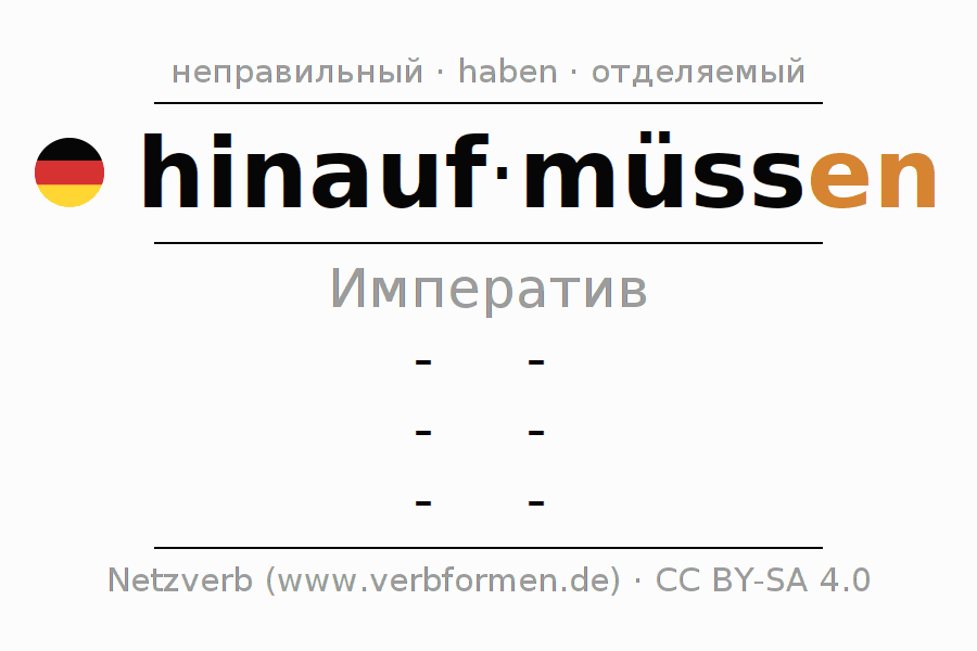 Этот глагол hinaufmüssen полностью спрягается во всех лицах и числах Императив Презенс.