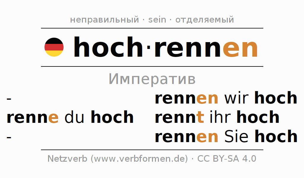 Этот глагол hochrennen полностью спрягается во всех лицах и числах Императив Презенс.