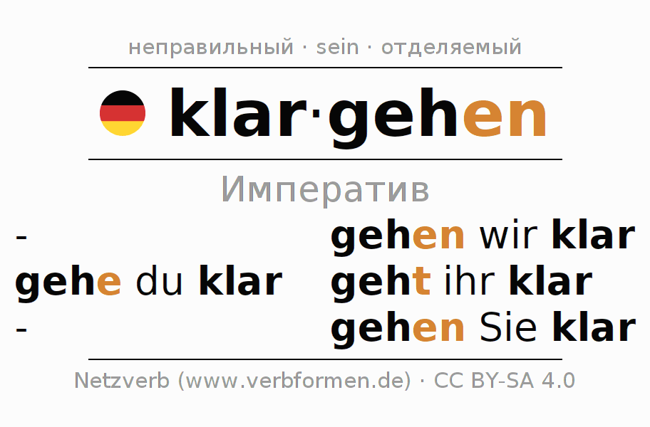 - gehe (du) klar (Второе лицоЕдинственное число)