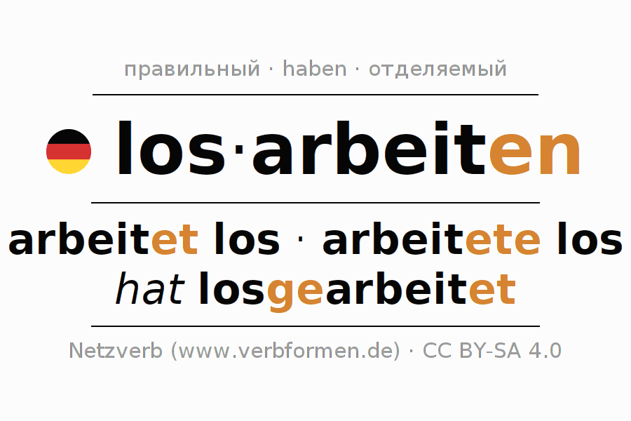 - arbeite (du) los (Второе лицоЕдинственное число)