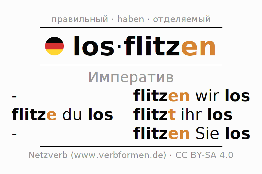 Глагольные формы в Императив losflitzen