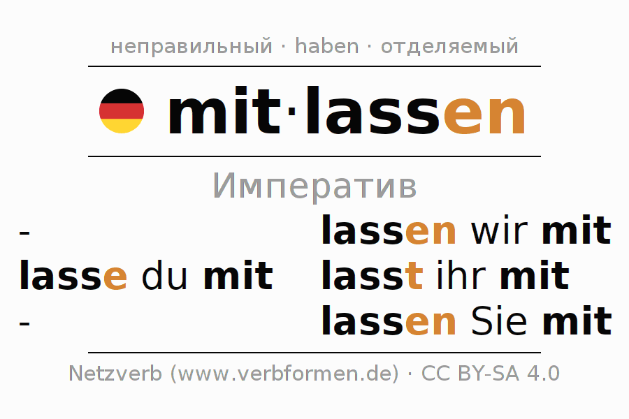 - Как спрягается mitlassen в Императив?