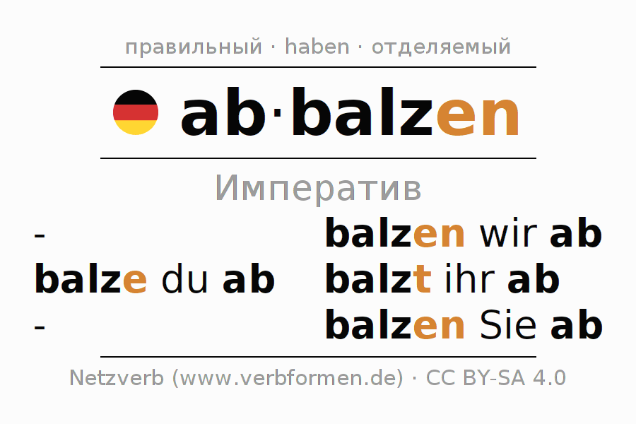 Этот глагол abbalzen полностью спрягается во всех лицах и числах Императив Презенс.