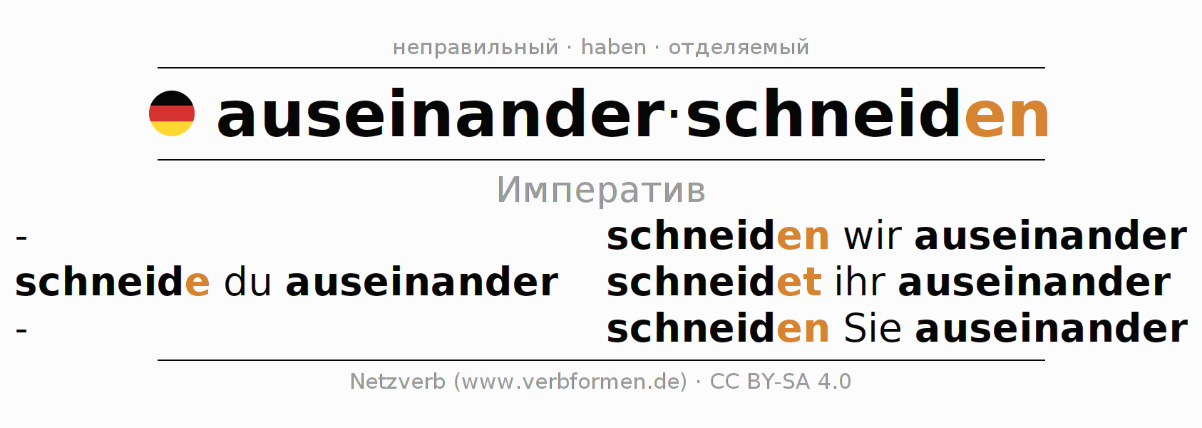 - schneide (du) auseinander (Второе лицоЕдинственное число)