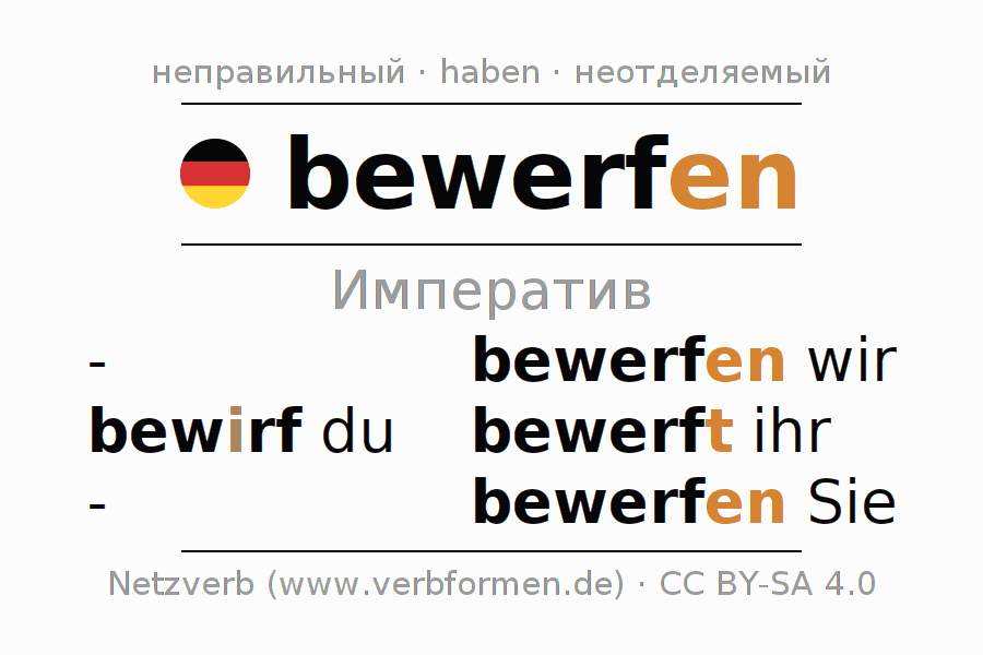 Этот глагол bewerfen полностью спрягается во всех лицах и числах Императив Презенс.